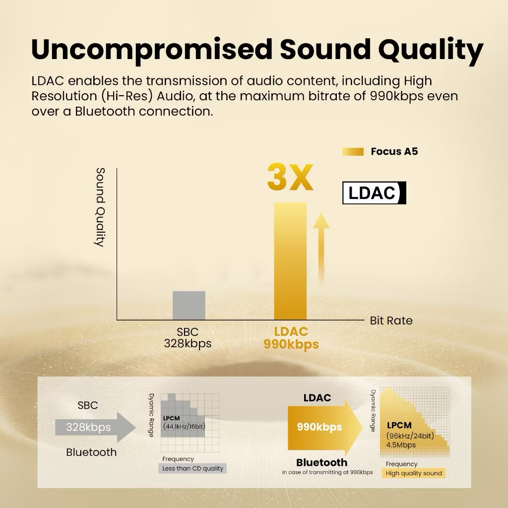 Công nghệ LDAC giúp truyền tải âm thanh độ phân giải cao, gấp 3 lần SBC, mang lại: